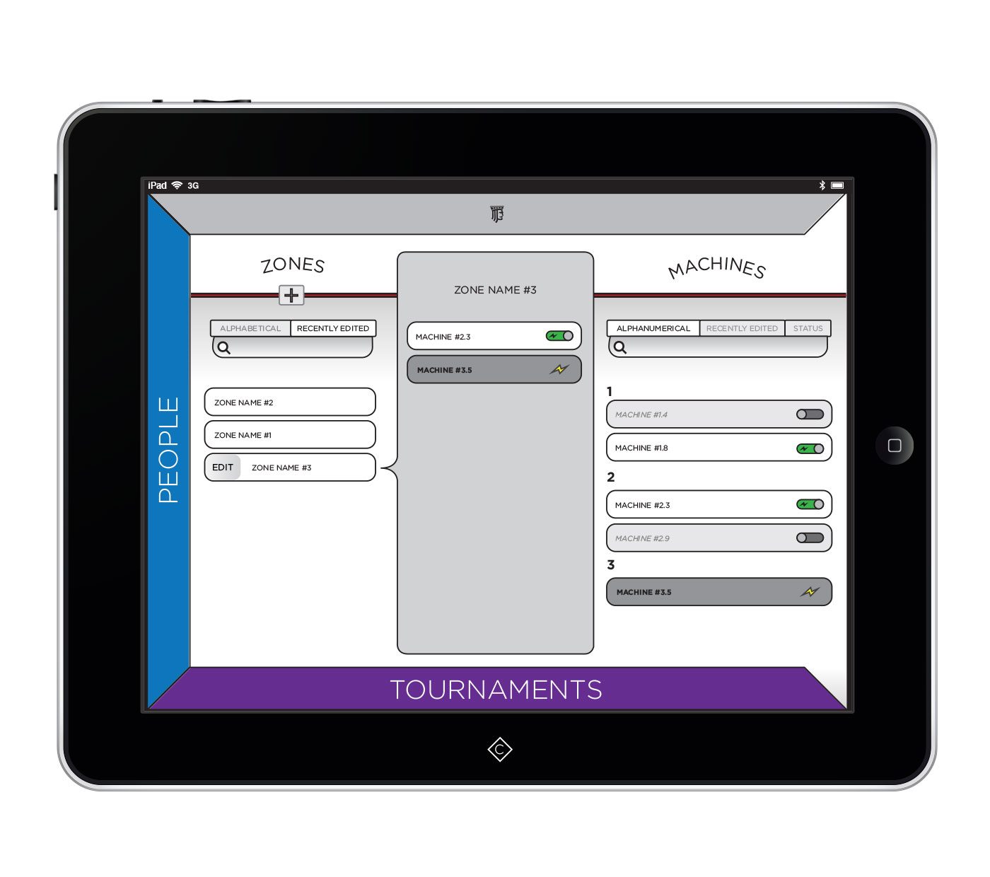 The navigation was reevaluated after testing with an initial pool of operators. The navigation around the edges felt to us like "easy access" in a loud, fast-paced environment, but instead was interpreted, not as links, but as descriptive labels for the content. The hierarchy was ambiguous.